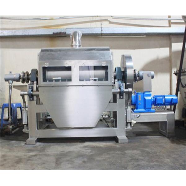 The completely dried products are scraped off the rotating cylinder body by the scrapers installed in the surfaces of drums body, and then gathered in the screw conveyor at the bottom of the scrapers. At the discharge end of screw conveyor, a crushing device is set. After being crushed and flake products is to
